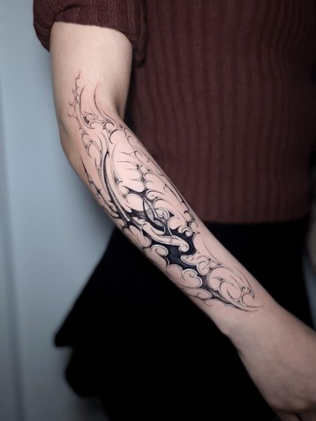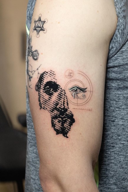 A Fine Arts graduate specialized in Painting, he brings over seven years of experience and multiple awards from tattoo conventions. His work blends blackwork, micro-realism, color, and freestyle, inspired by movement and anatomy. Constantly exploring new visual languages, he integrates experimental techniques such as halftone and op-art effects into contemporary tattoo art